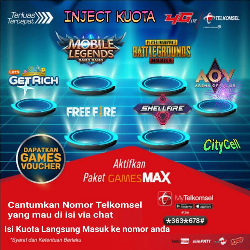 Jasa inject paket internet aneka operator seluler.